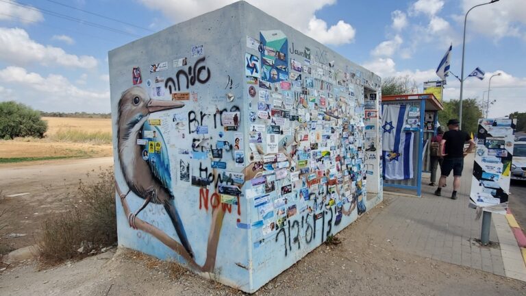 Located near Re’im Junction, this small roadside shelter became a desperate refuge for festivalgoers fleeing the Nova attack on October 7, 2023. Trapped inside, many were murdered as they tried to hide. The structure, still scarred by bullet holes, now stands untouched as a place of mourning. Visitors often leave flowers, candles, and flags here — silent gestures of remembrance for the lives lost in this haunting, powerful spot. Read more …